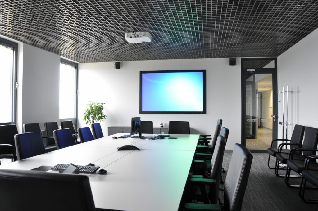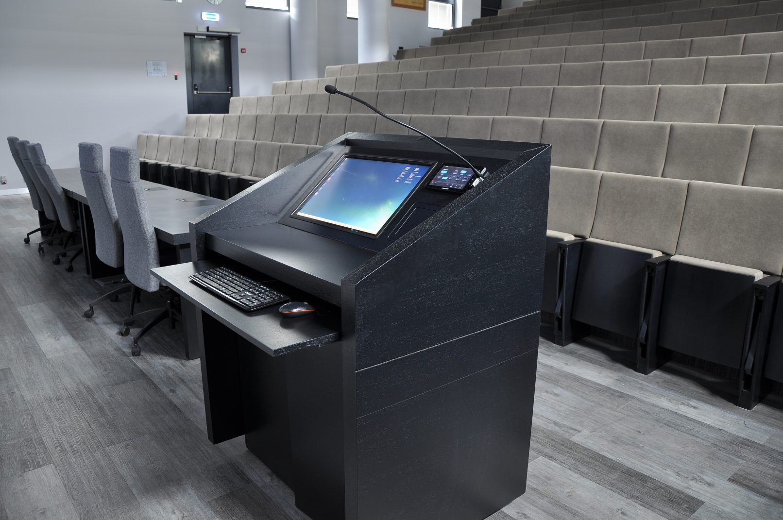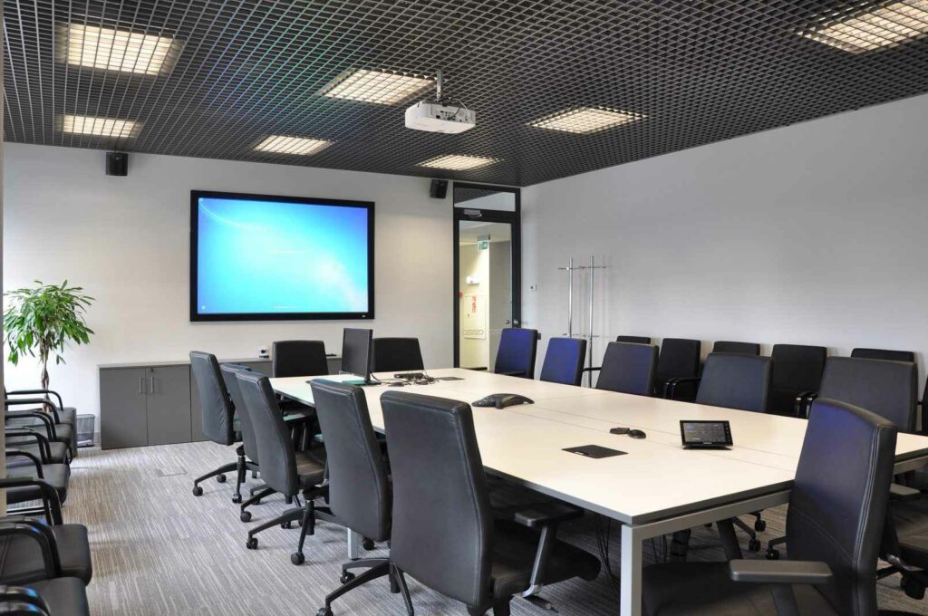 Moderniai įrengtose posėdžių bei pasitarimų salėse sumontuotos AMC akustinės sistemos, KRAMER vaizdo ir garso komutavimo įranga, NEC vaizdo projektoriai bei NEC 55“ įstrižainės monitoriai, ADEO vaizdo ekranai. Kiekvienoje salėje visa audiovizualinė bei kompiuterinė įranga yra valdoma naudojant Crestron įrangos valdymo pultelius, kurie yra įmontuoti į baldus. Audiovizualinės sistemos valdymas iš vartotojų nereikalauja jokių techninių žinių, todėl paruošti salę susitikimui ar pristatymui gali bet kuris administracinio pastato darbuotojas ar svečias.