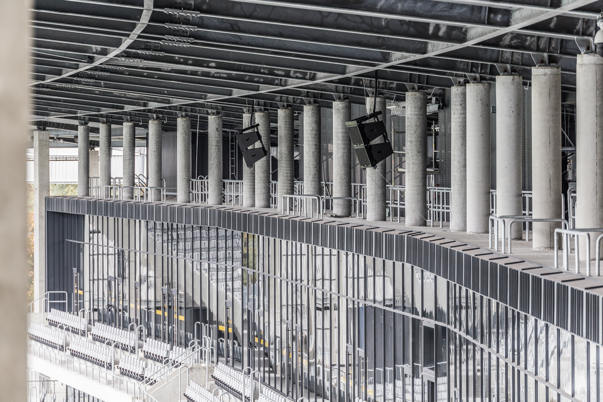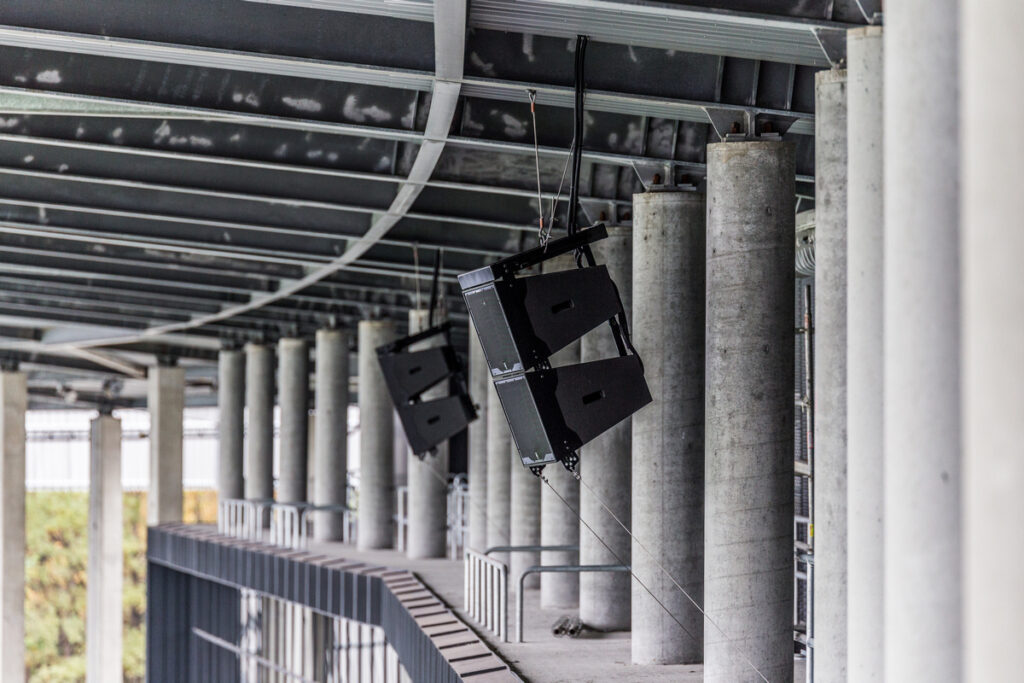 Stadione vienodais atstumais įrengtos 5 serverinės su garso stiprintuvais. Šias technines patalpas jungia keturgubas optinis skaitmeninio garso tinko žiedas, kuriam nutrūkus bet kurioje vietoje sistema funkcionuotų be jokio girdimo pertrūkio.