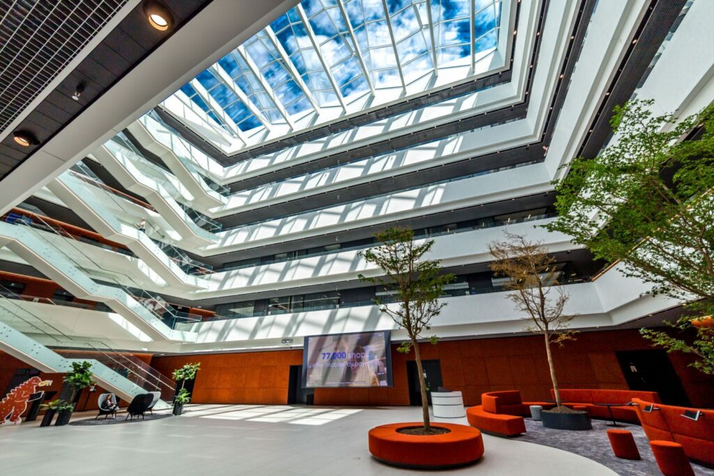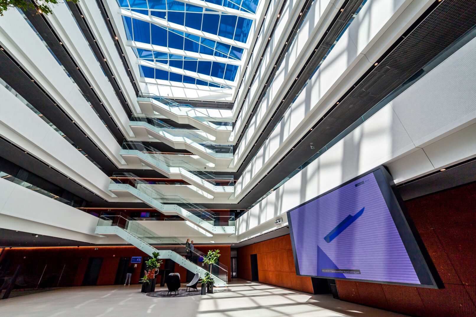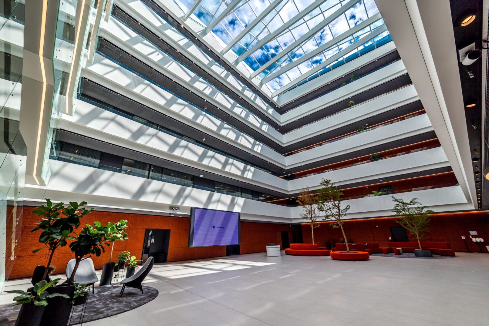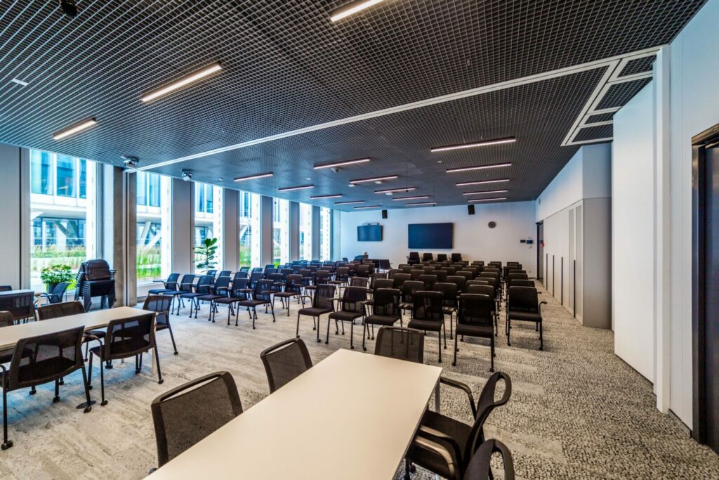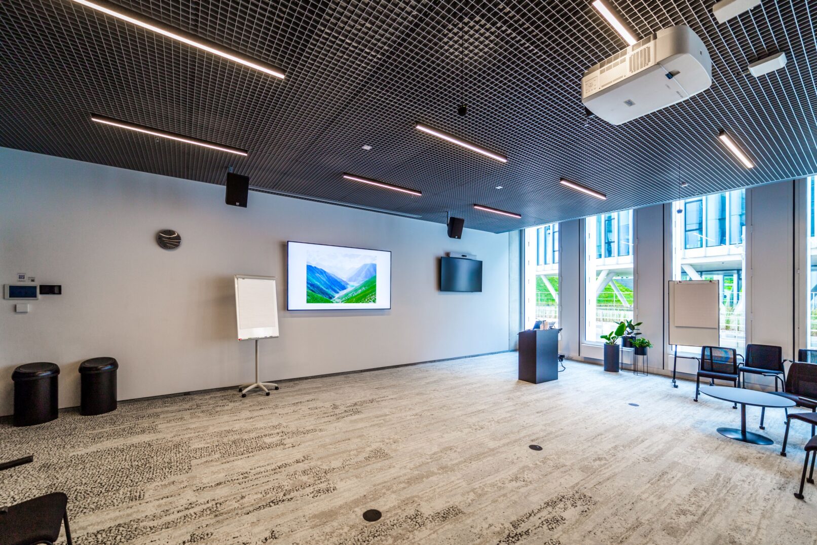 Atriumo erdvė bei dvi konferencijų salės turi tarpusavio apjungimo galimybes – galima vykdyti įvairaus tipo konferencijas ir renginius, panaudojant visas tris erdves kaip vieną, arba atskirai, bet kokiu scenarijumi. Atriumo erdvėje dalyvių skaičius gali būti išplečiamas dalyviams stebint veiksmą iš visų penkių aukštų „balkonų“ – didelio formato LED ekranas matomas iš visų aukštų, o garsas transliuojamas per visus aukštus. Vaizdo konferencijoms rengti įdiegta Cisco gamintojo įranga, panaudojant papildomus Shure ir Biamp gamintojų išmaniuosius mikrofonų masyvus.