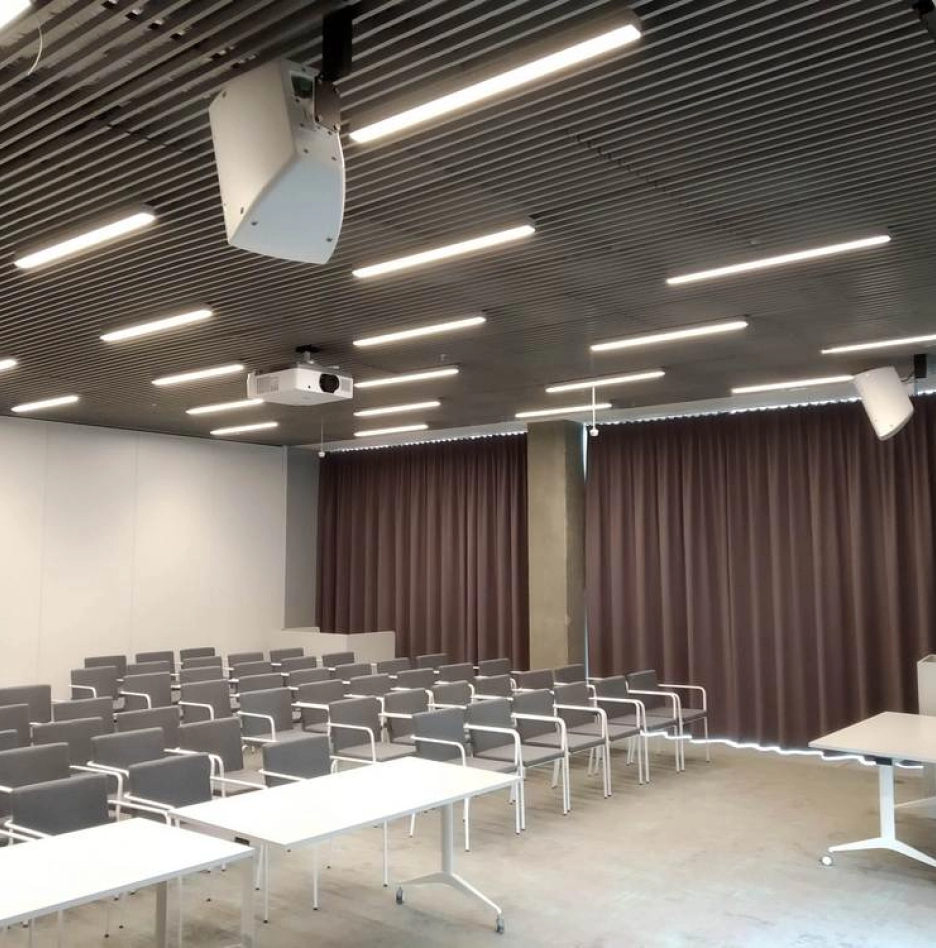 A proper video screen for overall image quality is no less important than video projector. Screen in made of special light-reflecting material, that enhances contrast, sharpness and brightness of projected image. More importantly, screens can range from simple hand-operated devices on a tripod stand, up to a fully automatic motorized solutions, that can be integrated with advanced room management and automation solutions.