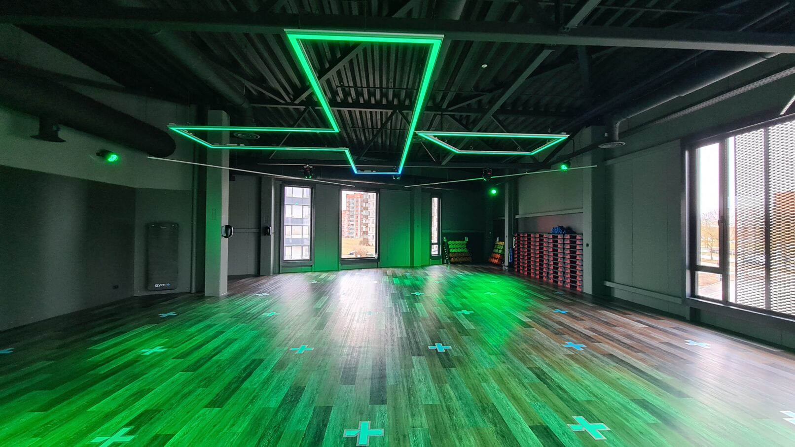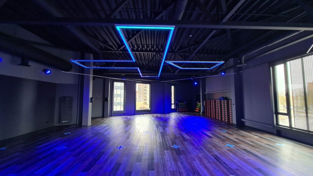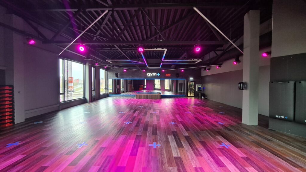 Garsas ir šviesa išskirtinio dizaino gym+ sporto klubuose