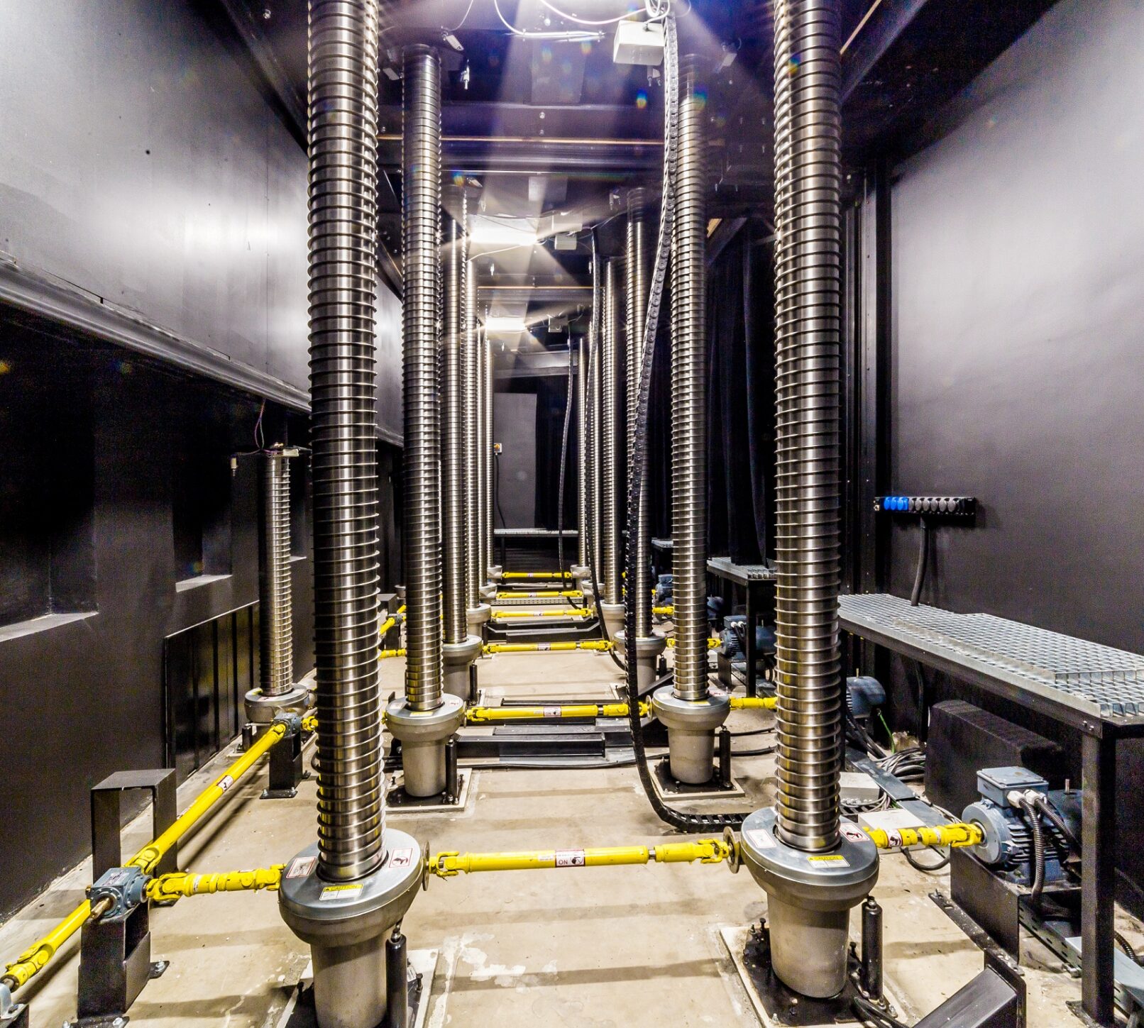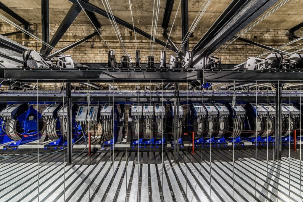 Rekonstrukcijos metu yra sumontuoti 35 komplektai motorizuotų greitaeigių dekoracijų keltuvų su tolygiai reguliuojamu greičiu iki 1,5m/s, 6 nauji prožektorių tiltai, 4 taškiniai mobilūs grandininiai keltuvai, motorizuoti  galinės uždangos ir šoninių užuolaidų mechanizmai, modernūs valdomi pultai su intuityvia ir gausybę funkcijų turinčia interaktyvia vartotojo sąsaja.