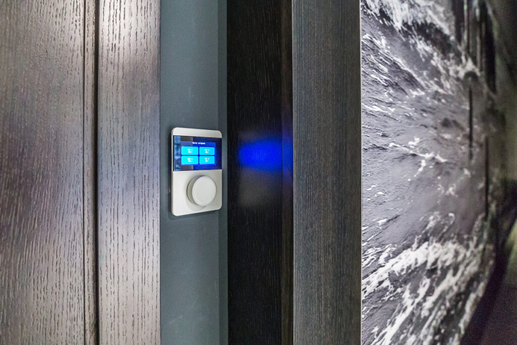 Salės mikrofonų ir muzikos garsas yra valdomas automatiškai veikiančiu Biamp multifunkciniu signalų procesoriumi. Muziejaus darbuotojai visus reikiamus pakeitimus atlieka sienoje sumontuotu Biamp valdikliu – toks sistemos valdymas yra maksimaliai supaprastintas ir nereikalaujantis specifinių žinių. Be to, šį Biamp procesorių pritaikėme ir salės vaizdo ekranų valdymui, todėl ta pačia sienine panele valdomas ne tik salės garsas, bet ir dviejuose didelio formato Samsung ekranuose rodomas vaizdas.