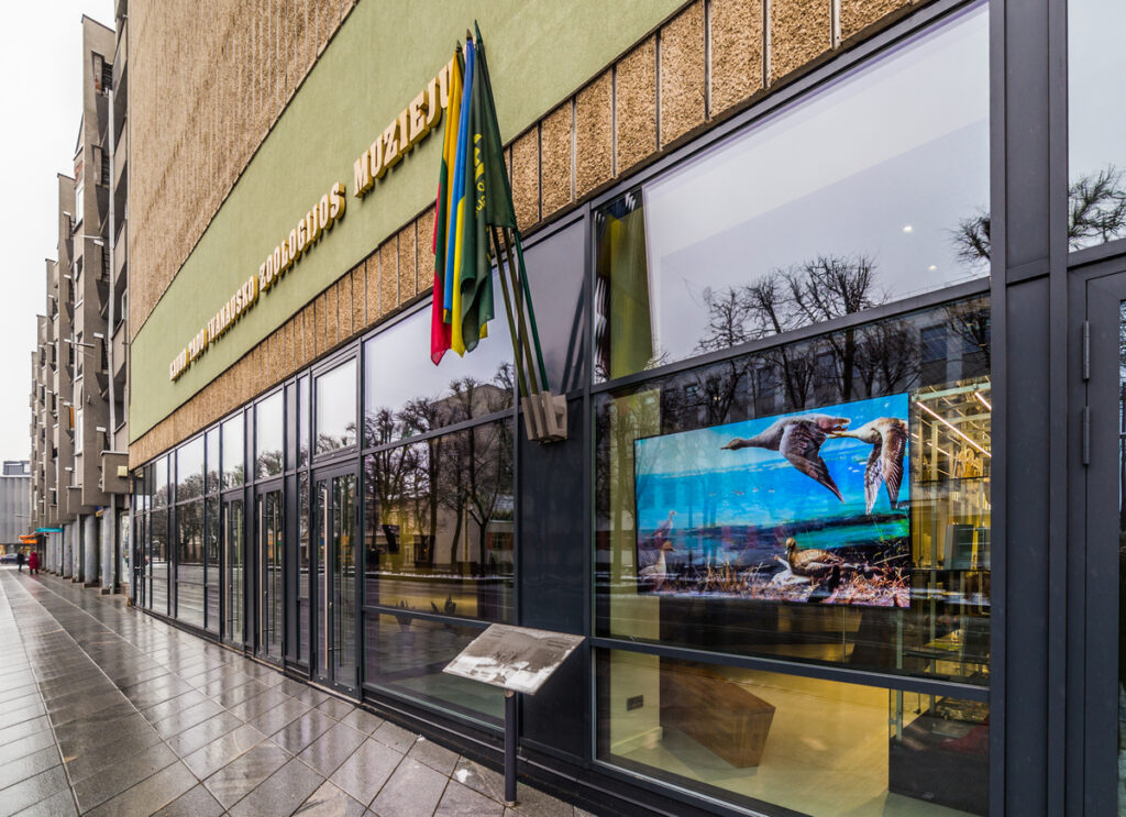 Atnaujinimo sulaukė ir muziejaus fojė – čia sumontavome 2×2 formato, 4K raiškos vaizdo sieną iš  didelio formato berėmių NEC gamintojo vaizdo monitorių. Visų keturių vaizdo monitorių spalvinės gamos yra sukalibruotos išoriniu kalibravimo įrenginiu po sumontavimo. Vaizdo sienos turinys valdomas muziejaus administratorių, panaudojant BrightSign vaizdo grotuvą su specialia programine įranga, leidžiančia nesudėtingai programuoti vaizdo transliacijos tvarkaraštį. Taip pat vaizdo ekranai atsidūrė ir į Laisvės alėją atsiveriančiuose languose, kad informacija apie muziejaus veiklą būtų matoma ir praeiviams.