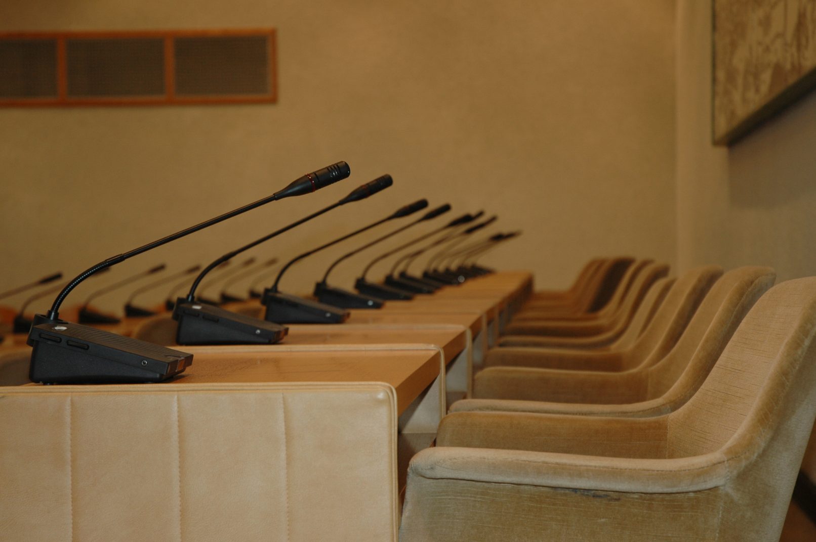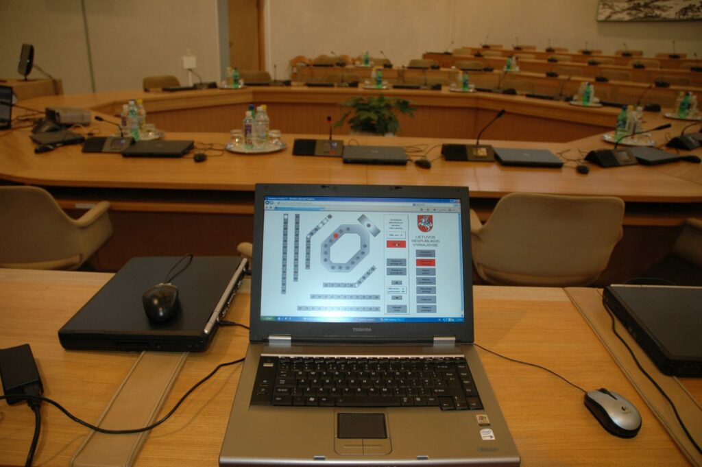 Moderniomis diskusijų ir vaizdo konferencijų sistemomis aprūpinta LR Vyriausybės posėdžių salė