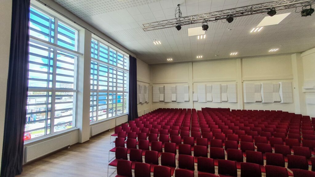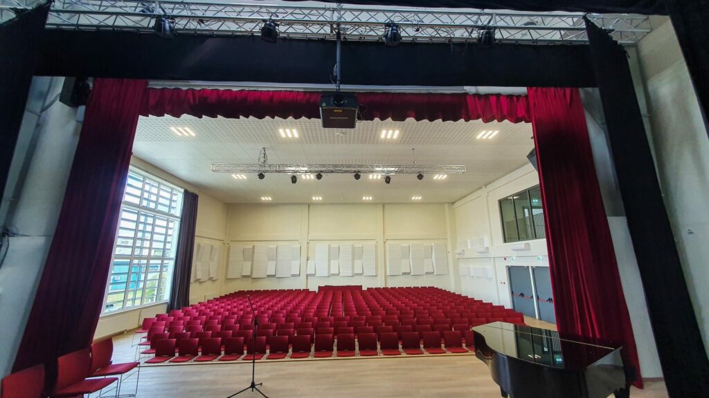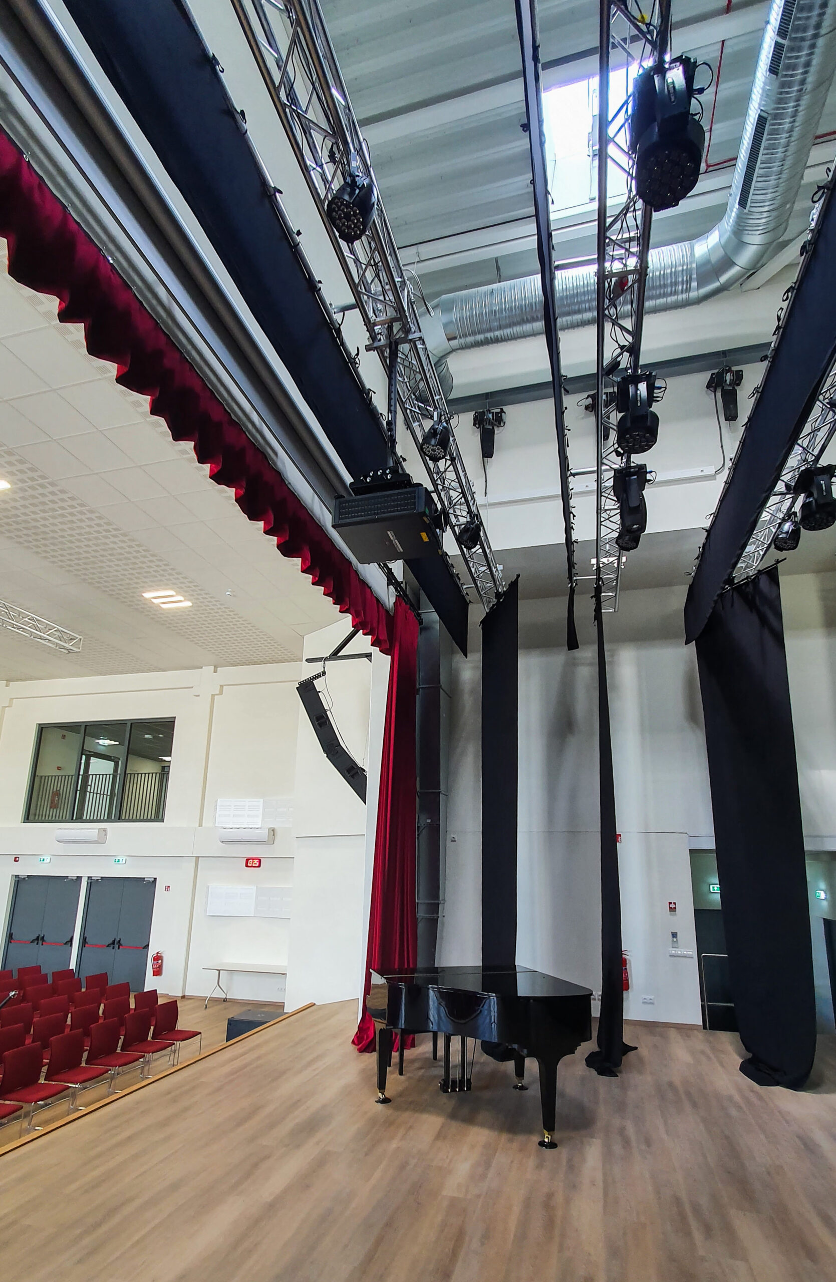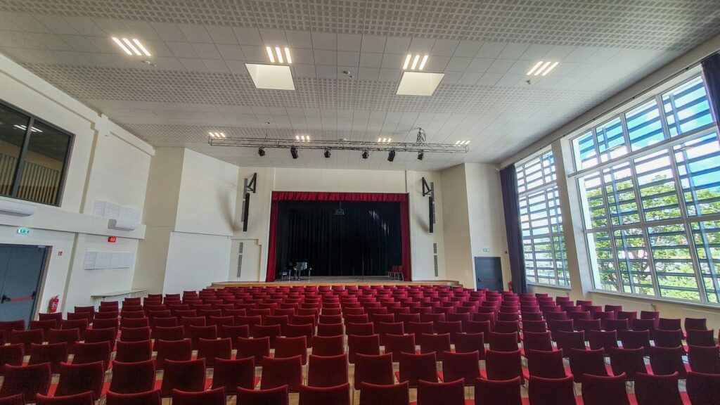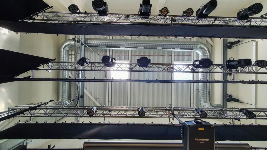 Pagrindinėje aktų salėje sumontavome apšvietimo sistemą, kuri leis įgyvendinti įvairiausio pobūdžio renginius. Visa įranga pakabinta ant motorizuotų tiltų, todėl esant poreikiui, šviestuvus galima perkonfigūruoti pagal renginio tematiką.