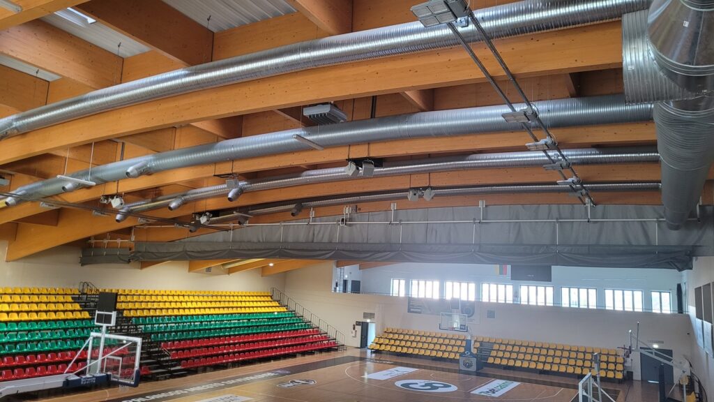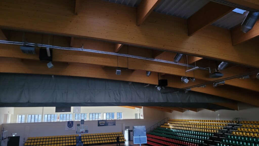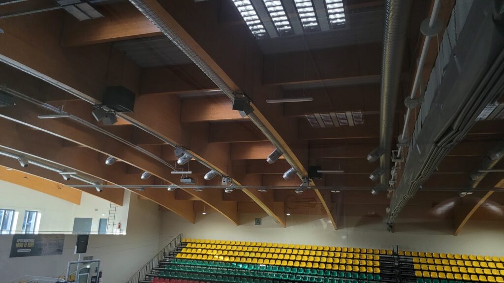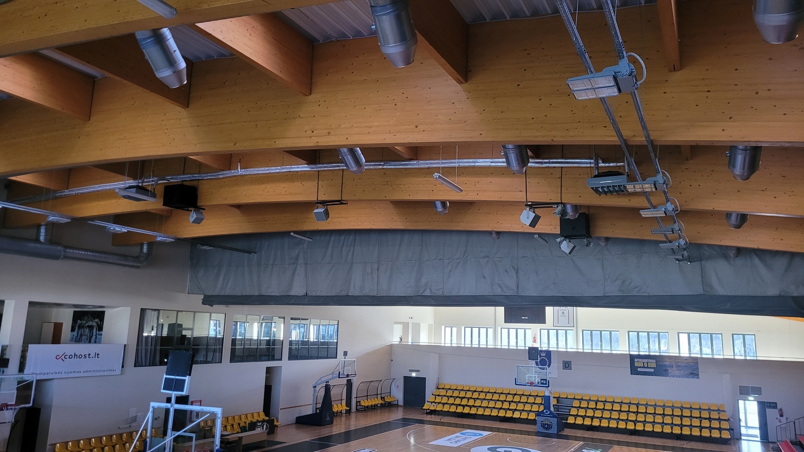 Palangos sporto centre Audiotono specialistai atnaujino maniežo garso ir mikrofonų sistemą. Pagrindinei garso sistemai pasirinktos neseniai rinkoje pasirodžiusios gamintojo AMC akustinės sistemos RC 8, kurios skirtos didelėms vidaus ir lauko erdvėms, turi drėgmei ir dulkėms atsparų korpusą. Šių sistemų išskirtinumas – 110º x 110º horizontalia ir vertikalia kryptimis atkuriamas garsas, kuris koaksialinio garsiakalbio dizaino dėka gali atkurti dažnius nuo 75 Hz iki 20 KHz. Dėl šių savybių RC 8 akustinės sistemos puikiai tinka ne tik balso įgarsinimui, bet ir muzikai. Šį skirtumą Palangos sporto centro lankytojai pajus iš karto apsilankę atnaujintose erdvėse.