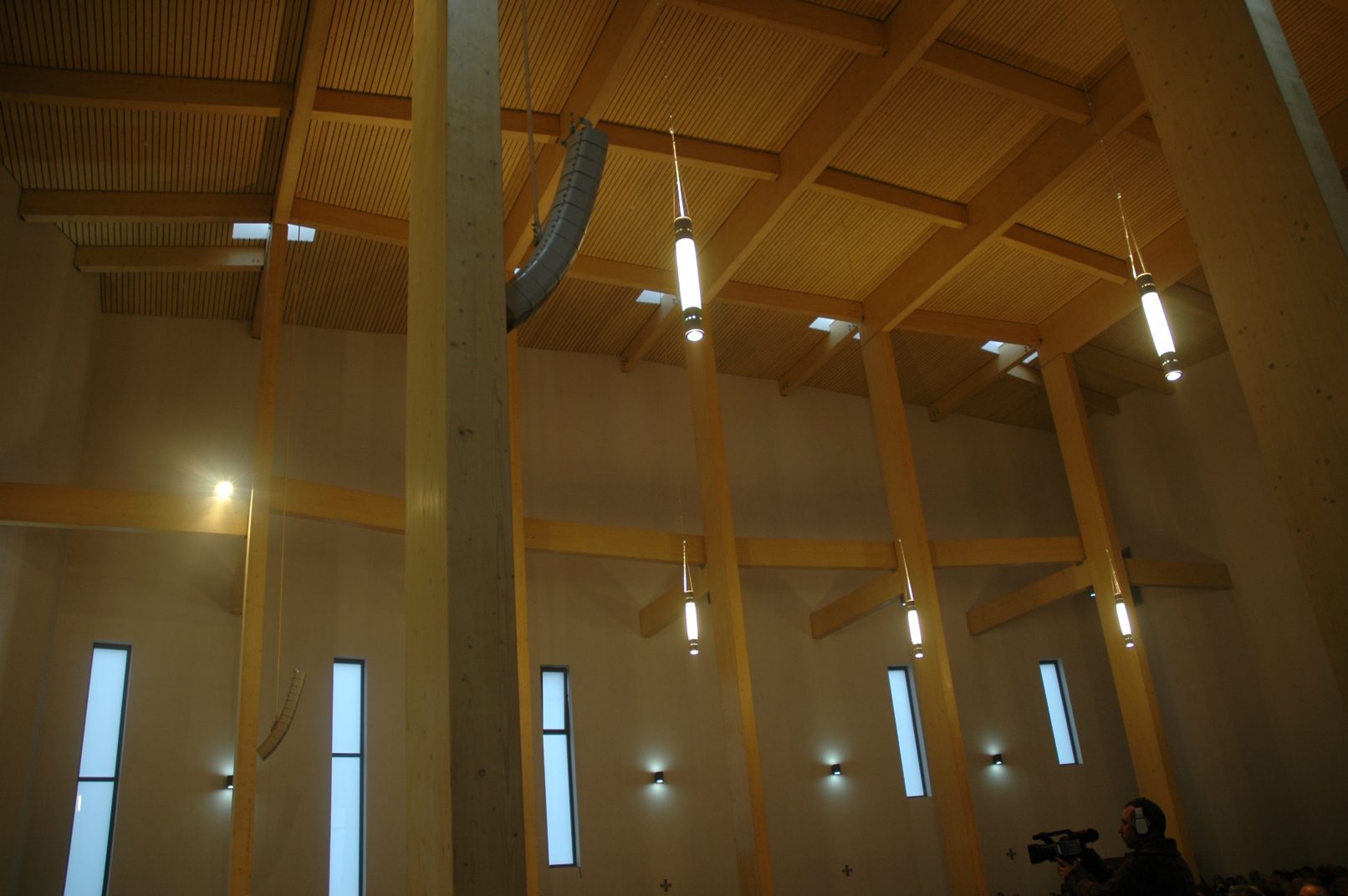 Pamaldų salės įgarsinimui panaudojome Martin Audio Omniline linijinio garso masyvo akustines sistemas, kurios buvo beveik nepastebimai integruotos į šviesų ir šiltą bažnyčios interjerą.