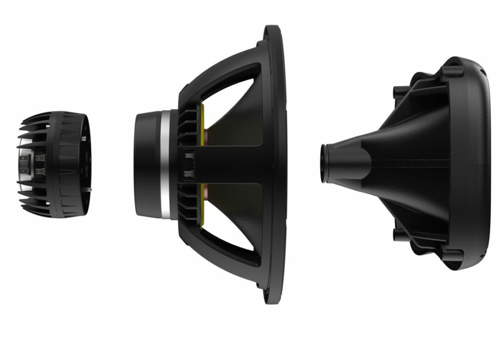 Triaxial akustinės sistemos garsiakalbį sudaro 15 colių žemų dažnių difuzorius su 4 colių rite, už jos stovi 4 colių vidutinių dažnių ir 2.5 colio aukštų dažnių difuzoriai, išdėstyti vienoje ašyje. Vidutiniai ir aukšti dažniai pereina iš garsiakalbio galinės dalies į priekinį 85° x 50° ruporą, kurio kryptingumas gali būti keičiamas pagal akustinės sistemos montavimo kryptį. Taip išgaunama fazinių iškraipymų neturinti vienalytė garso banga ir labai didelis garso slėgis.