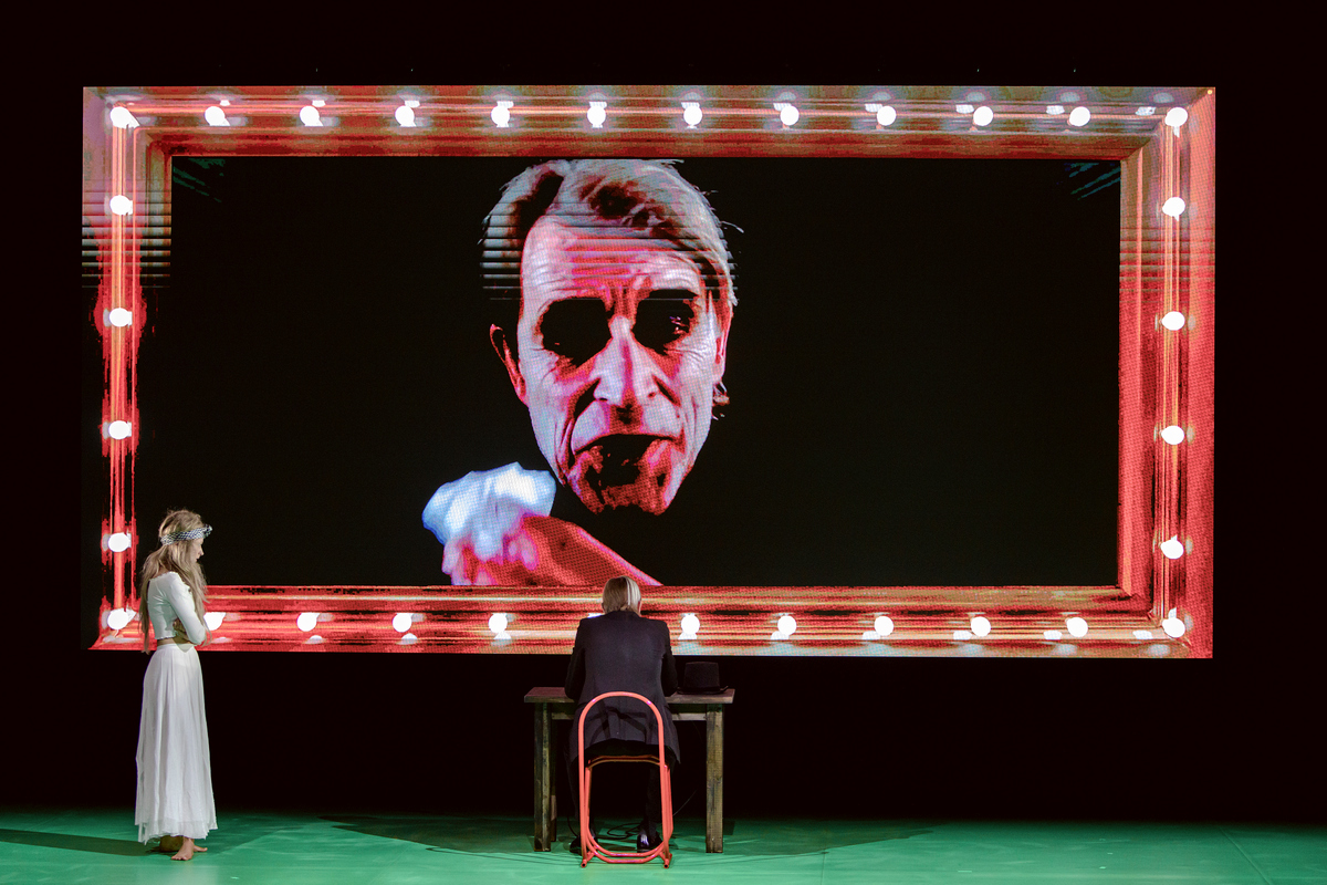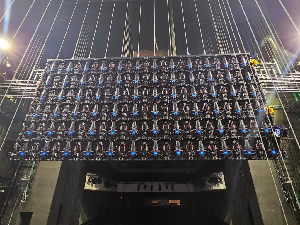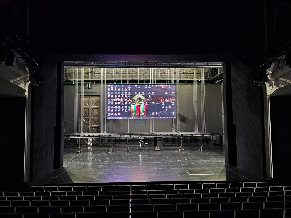 Įrenginys sukomplektuotas iš 72vnt atskirų P3.9 mm raiškos 0,5×0,5m dydžio modulių, kuriuos galima sumontuoti į didelio formato pakabinamą ekraną. Naujojo 2023 metų sezono pradžiai ši vizualinė priemonė buvo pirmą kartą panaudota premjeriniame spektaklyje “Audra”. Ekranas, kurio bendras svoris yra apie 550kg, nesudėtingai sumontuojamas ir pakabinamas ant dekoracijų traversų. Kai ekranas yra nenaudojamas, jis greitai ir paprastai išardomas dalimis ir sudedamas į transportavimo ir saugojimo dėžes su ratukais. Ekranas kitiems spektakliams ar renginiams gali būti surenkamas bet kokia konfigūracija ir geometriniais formatais pagal 0,5×0,5m dydžio segmentų kombinacijas.