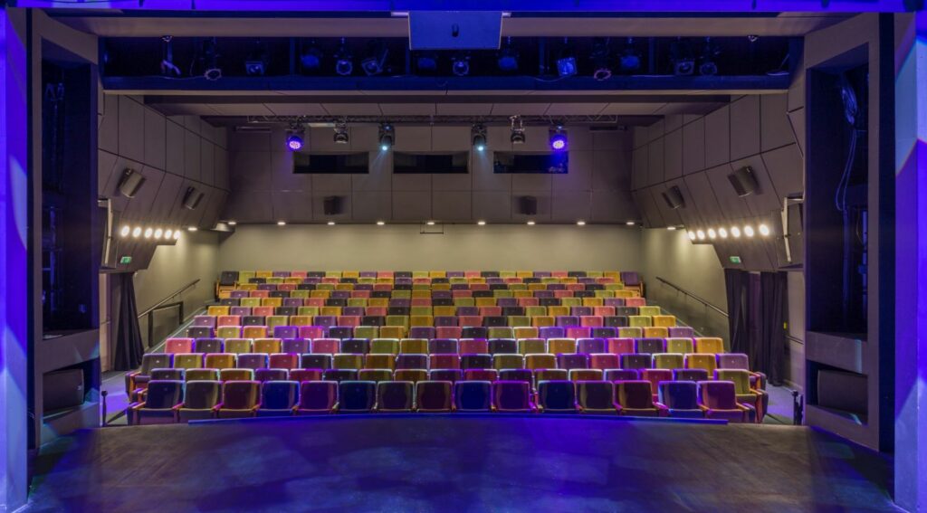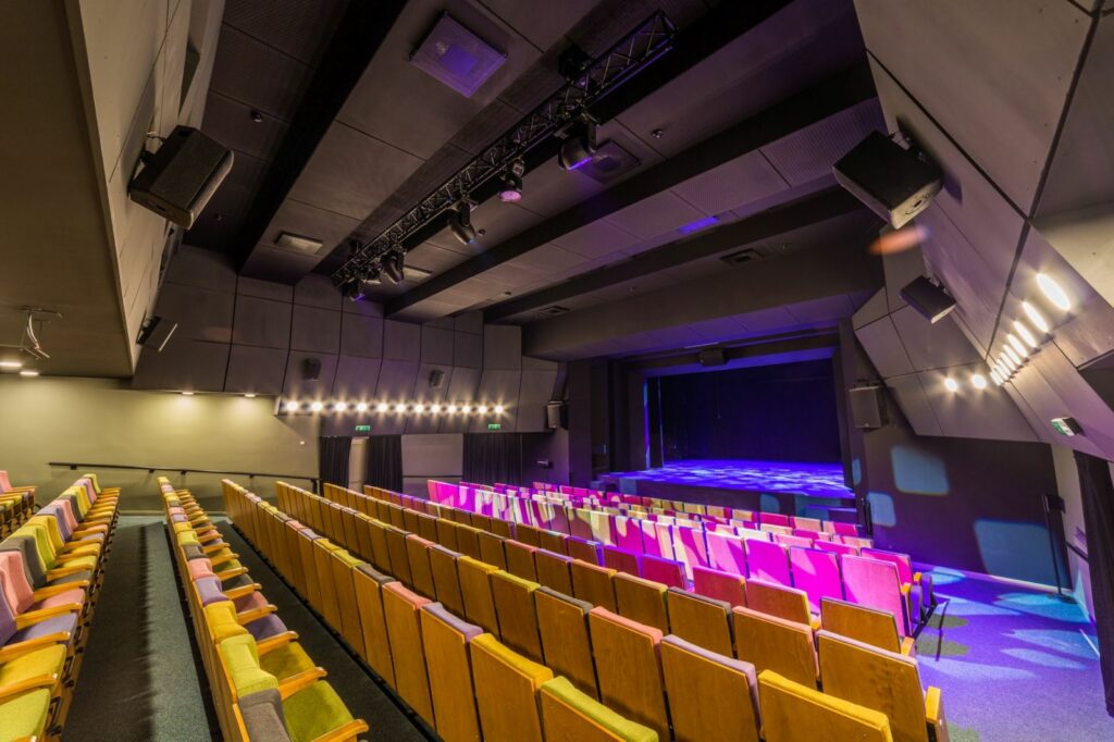 Audiotono inžinieriai įrengė erdvinio garso sistemą, kuri žiūrovus tarsi perkelia į scenoje vykstantį veiksmą ir leidžia pilnai atsiskleisti žiūrovų vaizduotei. Visos akustinės sistemos yra Martin Audio gamintojo – įgarsinimui panaudota CDD-LIVE! Serija, kuri yra aktyvinė ir pasižymi inovatoriškiausiais sprendimais – akustinėse sistemose sumontuoti koaksialiniai garsiakalbiai, kurių kryptiškumas yra asimetrinis – artimame lauke garsiakalbis groja plačiau, o tolstant nuo jo – garso laukas siaurėja. Todėl išgauname tolygesnį garso slėgio pasiskirstymą klausytojų erdvėje.